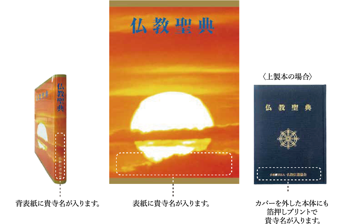 寺院名を入れた「仏教聖典」の制作を始めました。式典の記念や墓地のご成約者へのプレゼントとして、仏教の教えとともに、寺院の想いを届ける一冊です。